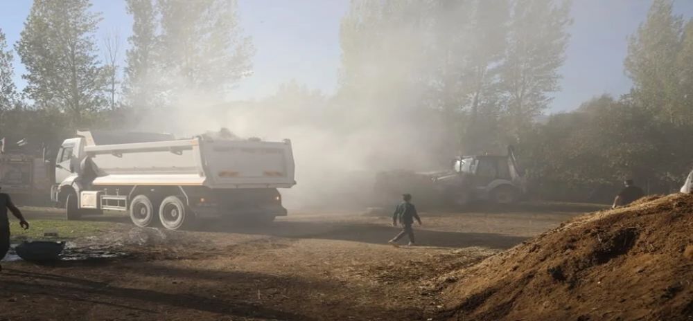 Otların sahibi ve mahalle sakinleri, yangını kendi imkânlarıyla söndürmeye