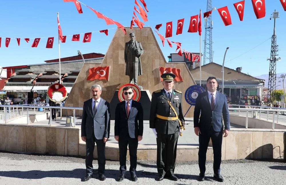 Başkale Çarşı merkezinde bulunan Atatürk Anıtı’na çelenklerin bırakılması, saygı duruşu ve İstiklal Marşı’nın okunmasıyla başlayan tören, hükümet konağında tebriklerin kabul edilmesinin ardında.